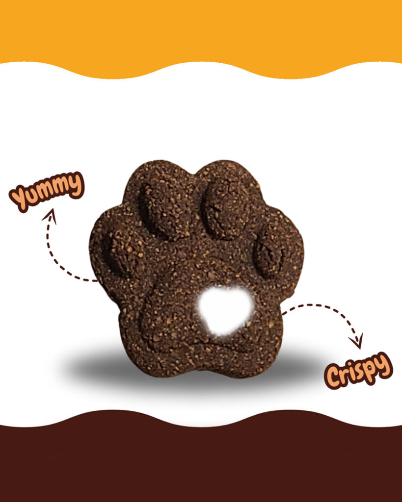 Chicken liver, oat flour, chicken feet bone broth, carob powder, banana, organic coconut flour, organic coconut oil, baking soda, goat milk powder.