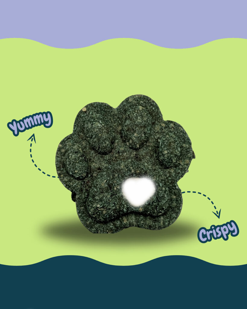 Turkey, oat flour, eggs, organic coconut flour, organic green pea flour, organic coconut oil, spirulina powder, dehydrated parsley, dehydrated mint, goat milk powder.
